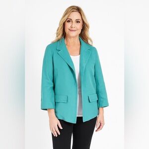 Talbots 100% Linen Jacket Turquoise Lined Womens 16W Classic Coastal Blazer Open