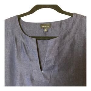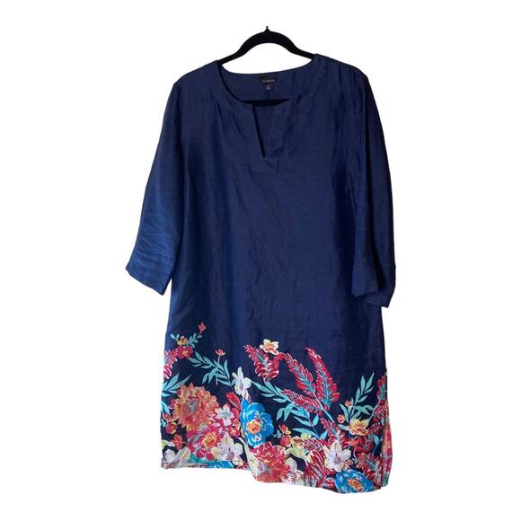Talbots 100% Linen Navy Blue Shift Dress w Floral design Small