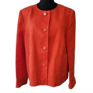 Talbots 100% Linen Orange Blazer Jacket Size 16