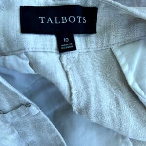 Talbots 100% Linen Pants Size 10 Tan High Rise Lightweight Wide Leg Trousers