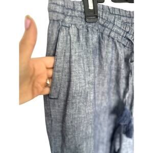 Talbots 100% Linen Pants Size 6 Blue Drawstring Lightweight Beachy Boho Wide Leg
