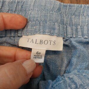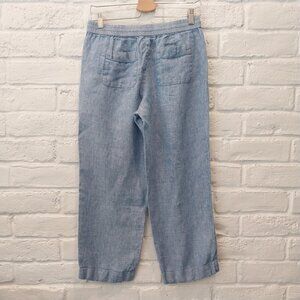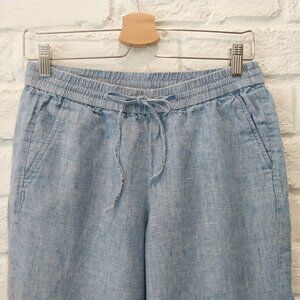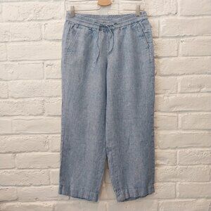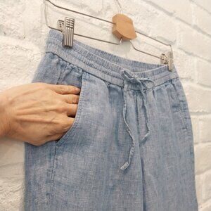 Talbots 100% Linen Pants Women 6 P Short Blue Pull on Wide Leg Drawstring Pocket