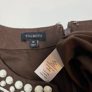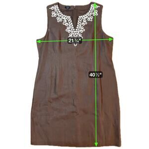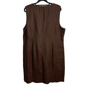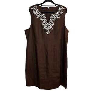 Talbots 100% Linen Sheath Midi Dress Brown Plus Size 18 Beaded Business Casual