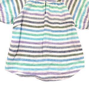 Talbots 100% Linen Striped Short Sleeve Top Size PS P Puff Sleeve Peasant Blouse