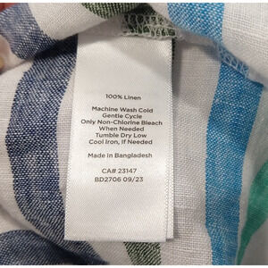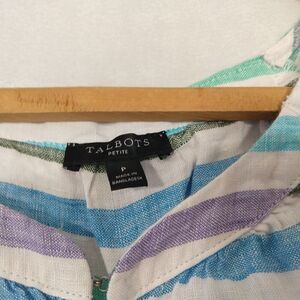 Talbots linen striped peasant bouse, size Petite P. In gently preowned condition, no flaws noted.