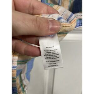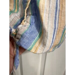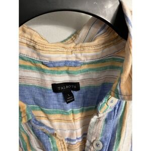 Talbots 100% Linen Tie Front Blouse Womens Large Striped Beach Boxy Button Up