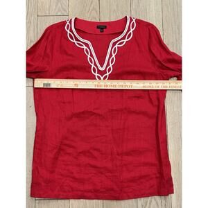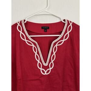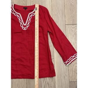 Talbots 100% Linen Tunic Shirt Popover Red Womens Size Medium Resort Beach