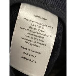 Gently pre-owned Talbots wide straight leg pants in navy blue. 100% linen woven material, lightweight and breathable. Unique button closure on front hip for nautical/military flare. Flat front. Button back pockets. No front pockets. Mid-rise. In good used condition.