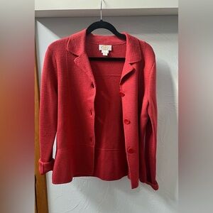Talbots 100% Marino Wool Cardigan Size Medium Button Down Red Preppy Classic