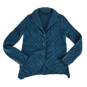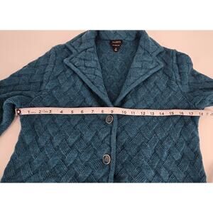 Talbots 100% Merino Wool Basket Weave Cardigan Women’s Medium Teal Grannycore Cozy