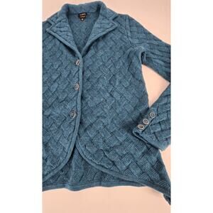Talbots 100% Merino Wool Basket Weave Cardigan Womens Med Teal Soft Grannycore