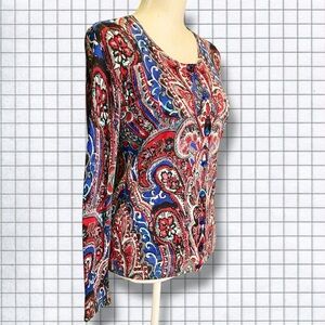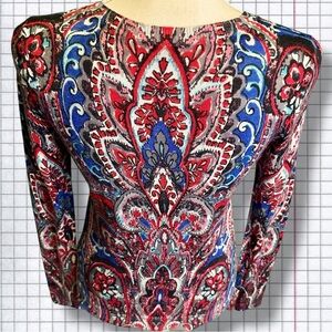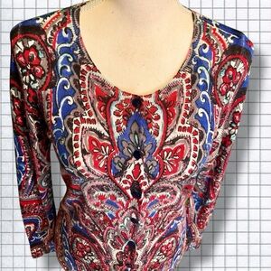 Talbots 100% Merino Wool Blue & Red Multicolor Brushed Paisley Cardigan Size S