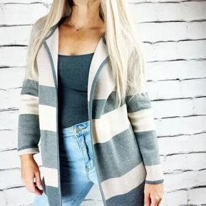 Talbots 100% Merino Wool Duster Cardigan Open Front Color Block Gray SZ M in Beautiful Pre-Owned Condition