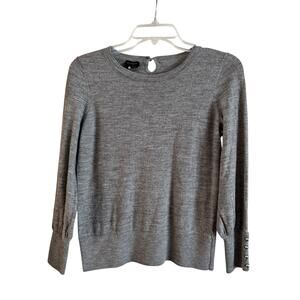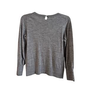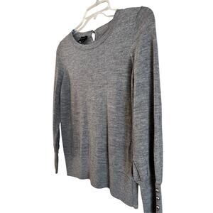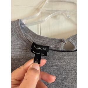 Talbots 100% Merino Wool Embellished Cuff Sleeve Sweater Gray Essential M