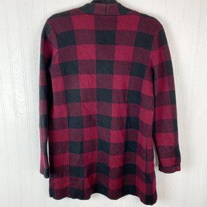Talbots 100% Merino Wool Red Plaid Cardigan Size small