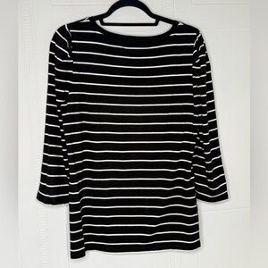 Talbots 100% Pima Cotton Black White Striped Long Puff Sleeve Crew Neck Top M