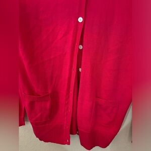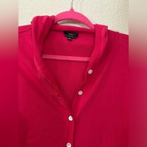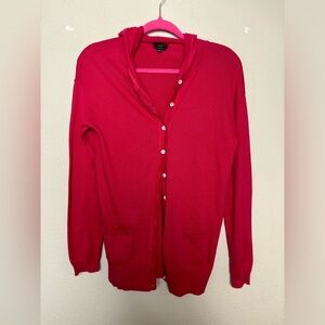 Talbots 100% Pima Cotton Red Raspberry Pink Hooded Cardigan Sweater S