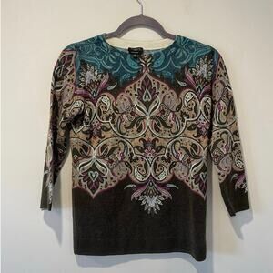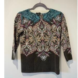 Talbots 100% Pure Cashmere Paisley 3/4 Sleeve Boatneck Sweater Size Petite Small