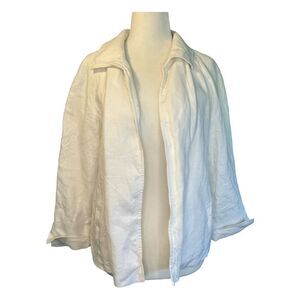 Talbots 100% Pure Irish Linen Blazer White Open Front Jacket Long Sleeve S