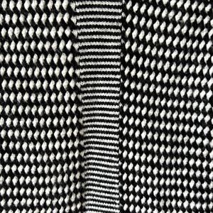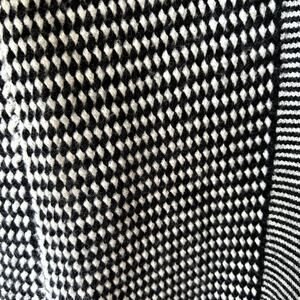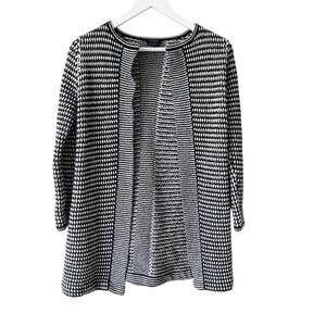 -Long sleeves, open front. Chunky knit in black and white.