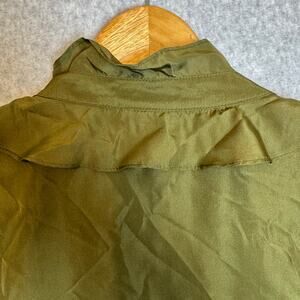 Talbots 100% Silk Blouse Womens Size 14W Ruffle Green Button Down Sleeveless Top