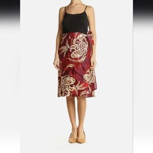 Talbots 100% Silk Flora/Red Paisley Wrap Skirt Size 14 P EUC