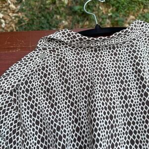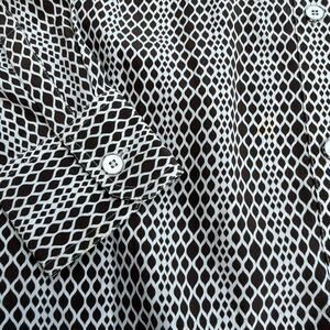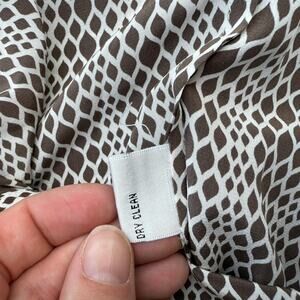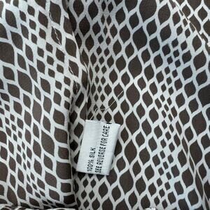 Elevate your wardrobe with this sophisticated Talbots button-down blouse! Crafted from 100% silk, this shirt features a chic brown and white geometric print that's perfect for adding a touch of elegance to any outfit.