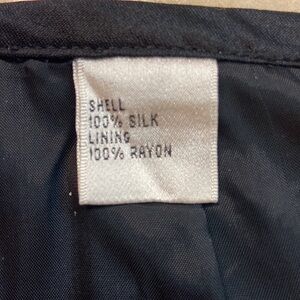 Talbots 100% silk dress trouser in black. Straight leg with side zipper. Fully lined in rayon. New condition. Great for holiday party/Christmas/Hanukkah. 30.5” inseam and 11” rise with 13” waist measurement.