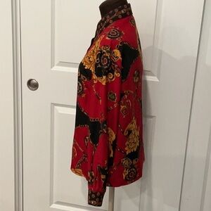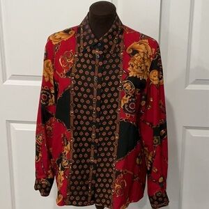 Talbots 100% Silk Red Black Esquiration Mobwife Button Down Shirt Top Size 12P