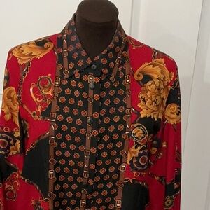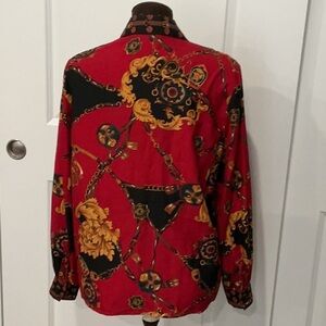 Tags: long Sleeve Button Down Chain Print Old Money 90s Mobwife Silk Equestrian
