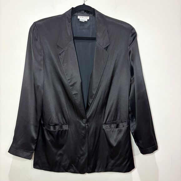 Talbots 100% Silk Satin Blazer Jacket Women 10 Evening Tuxedo Black Tie Elegant