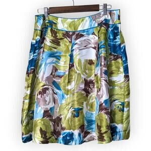 Talbots 100% Silk Skirt Women's 12P Watercolor Floral A-Line Flare Knee Length