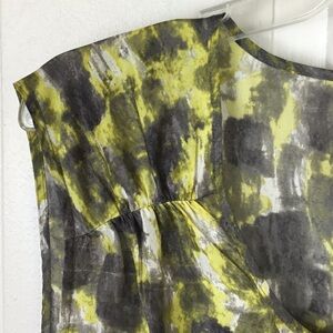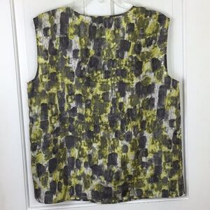 Talbots 100% Silk Gray & Yellow Geometric Tiered Sleeveless Blouse