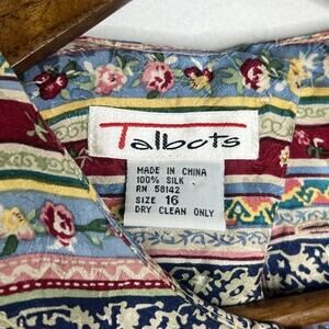 Talbots 100% Silk Vintage Floral Crew Neck Long Sleeve Shirt Size 16 Women