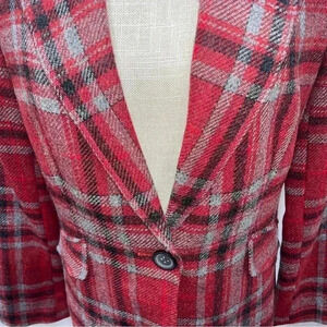 Description: Completely lined, beautiful quality made, single button closure.  100% wool blazer.  Perfect buisness wear, professional wear.  Plaid