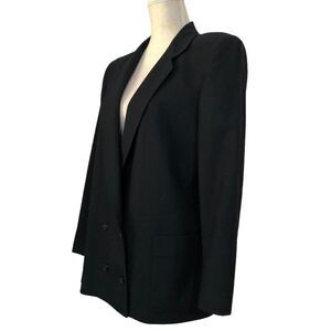 Talbots 100# wool structured double breasted blazer with two button closure. Great for the office or wear with jeans. Black size 10