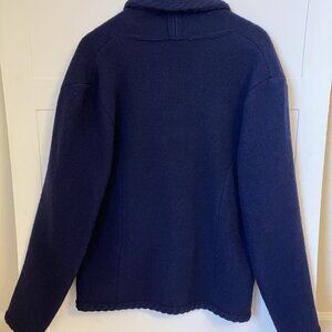 Classic, cozy, and timeless — this Talbots 100% wool cardigan sweater is the perfect fall and winter layering piece. Made from soft, warm wool in a rich navy blue, it features a flattering shawl collar and a relaxed yet structured fit.