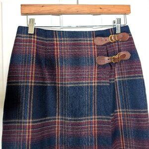 Talbots 100% Wool Plaid Wrap Skirt With Leather Buckle Accents 8 Petites