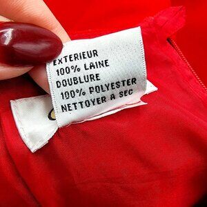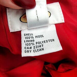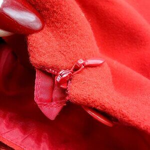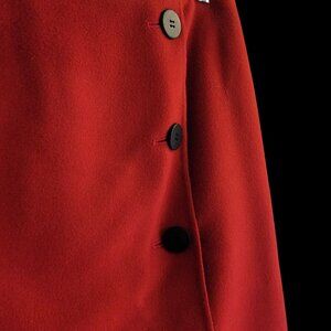 Classic design featuring a structured wool exterior and smooth polyester lining. The vibrant red hue and button accents add a sophisticated touch.