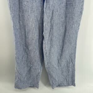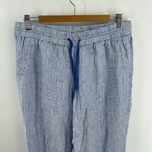 Talbots 100% linen striped wide leg elastic waist pull on pants sz MP