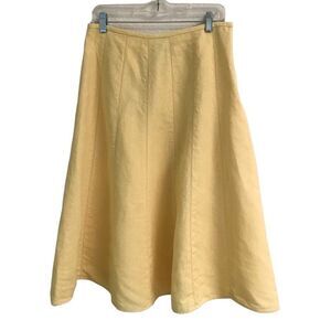 Talbots 100% pure thick Irish Linen butter yellow midi circle skirt 8P