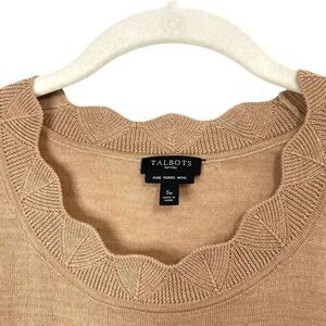 Talbots 100% merino wool scallop neck line sweater Size SP Petite camel tan neut