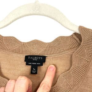 Talbots 100% merino wool scallop neck line sweater Size SP Petite camel tan neutral