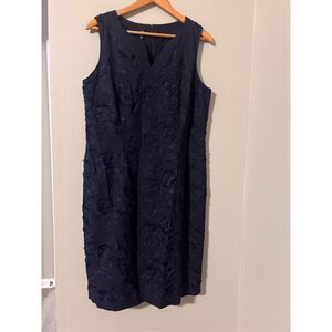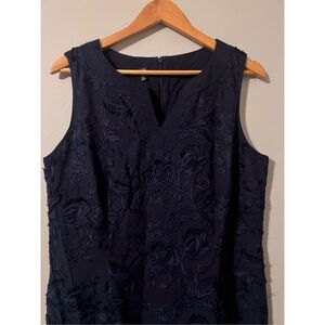 Talbots 12 Sleeveless Sheath Dress Navy Blue Floral Lace Applique Wedding Guest