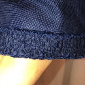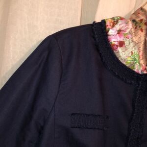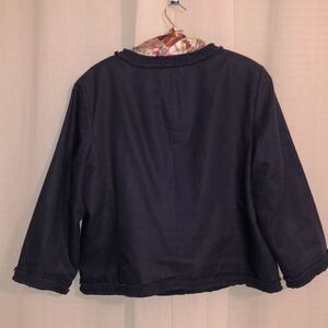 Talbots 14 Navy Linen Cotton Blazer Jacket with Frayed Ruffled Trim Details