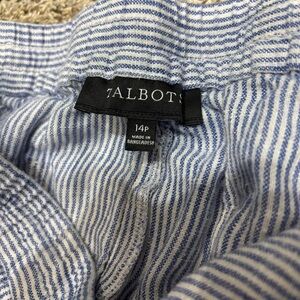 Talbots 14P Linen Wide Leg Pants Pull On White Blue Striped High Rise