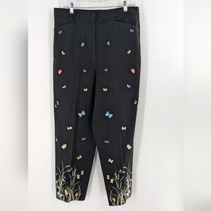 Talbots 16 Embroidered Floral Butterfly Tapered Relaxed Stretch Pants Black