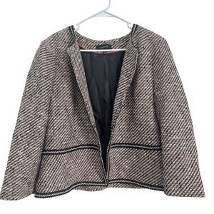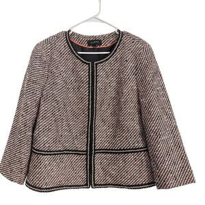 Talbots 16 Grosgrain Trim Black Multicolored Peach Tweed Academia Cropped Jacket