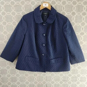 Talbots 16WP Blazer Textured Navy Blue Women's