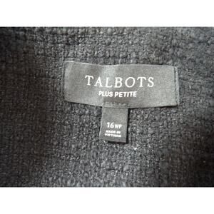 Talbots 16WP Blazer Tweed Black Weave Cotton Cardigan Full Zip Office Career Lin